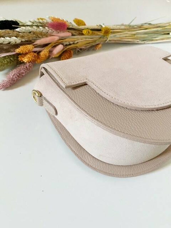 ✔ Prachtige lederen handtas met suede flap